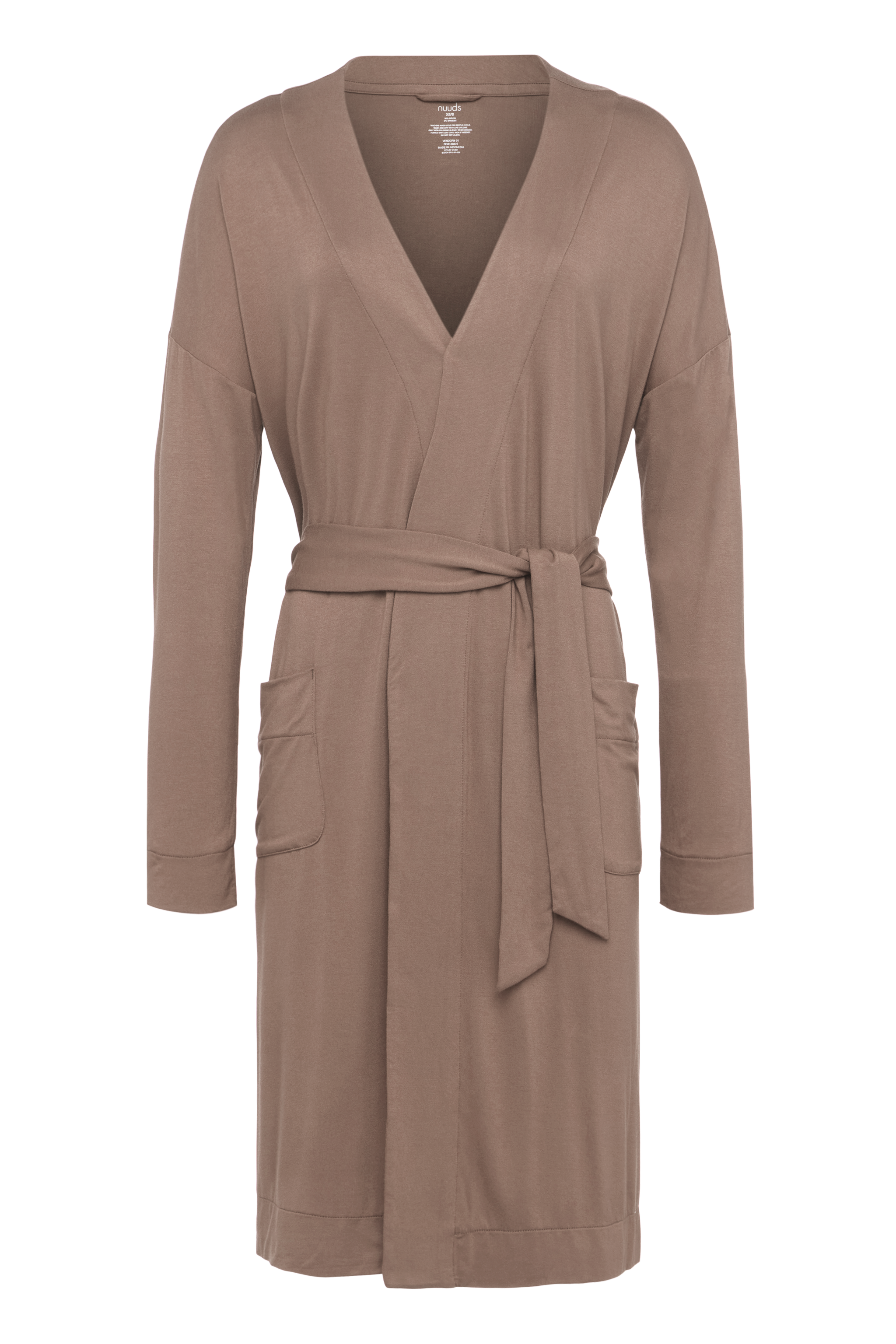 Sweat-free GRWM moments in this little number. A light and airy take on your favorite robe, featuring a self-tie belt and two front pockets. A perfect pair with any of our pajamas.