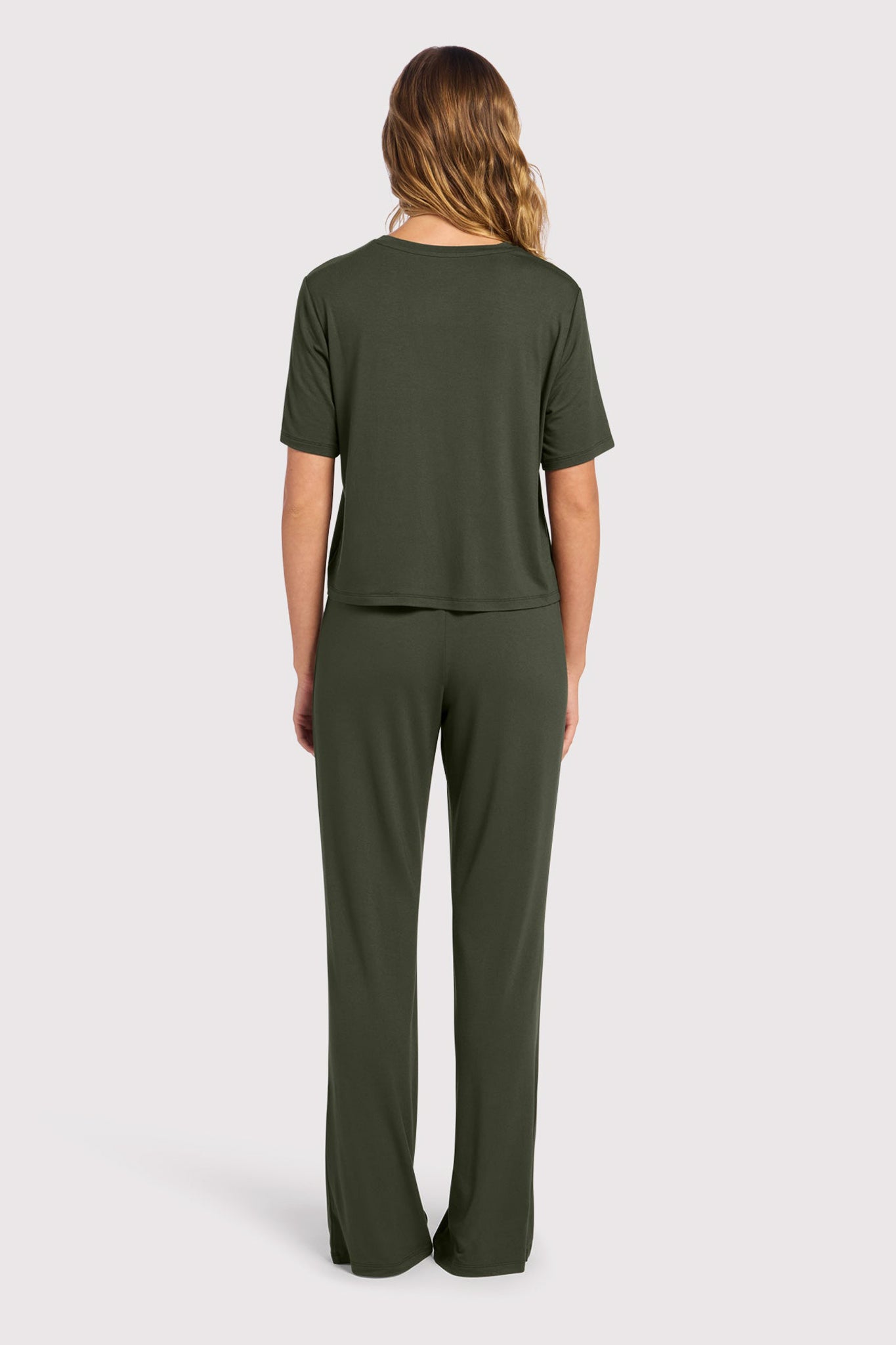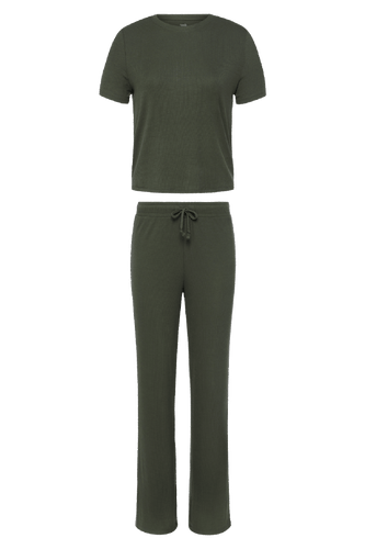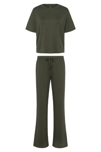 - Slightly cropped, boxy tee & high-waisted drawstring pant set