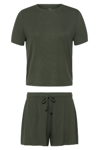 Feel nuud in our cooling pajama top and pant set. Curated with your comfort in mind, this breathable set will move with you throughout the night and on your DND (Do Not Disturb) days.