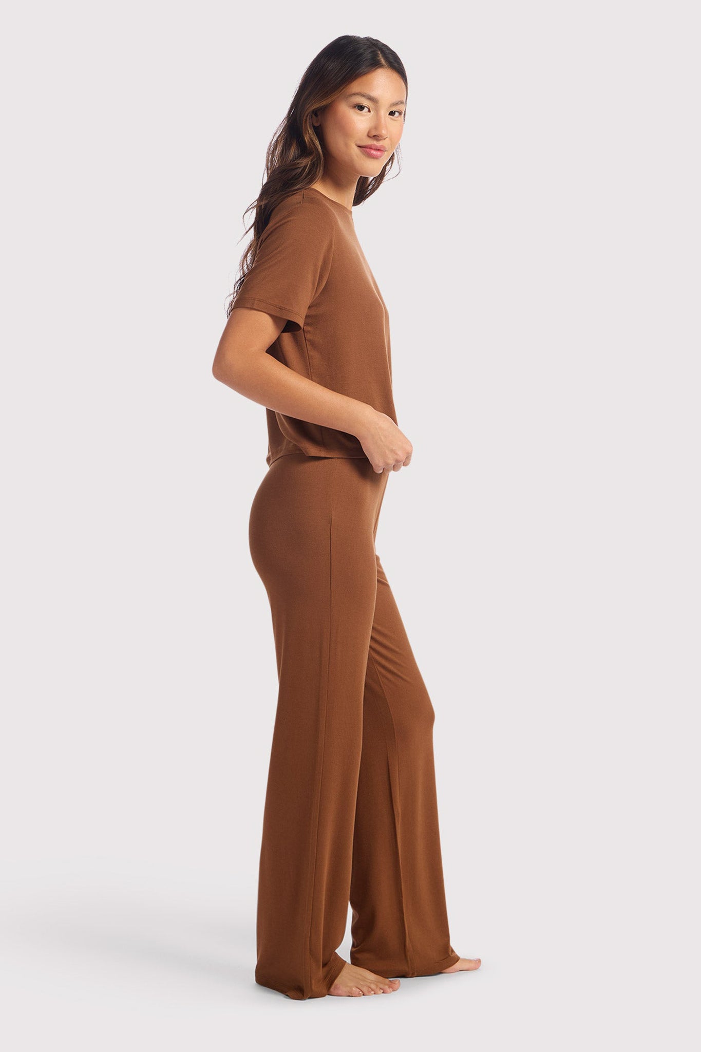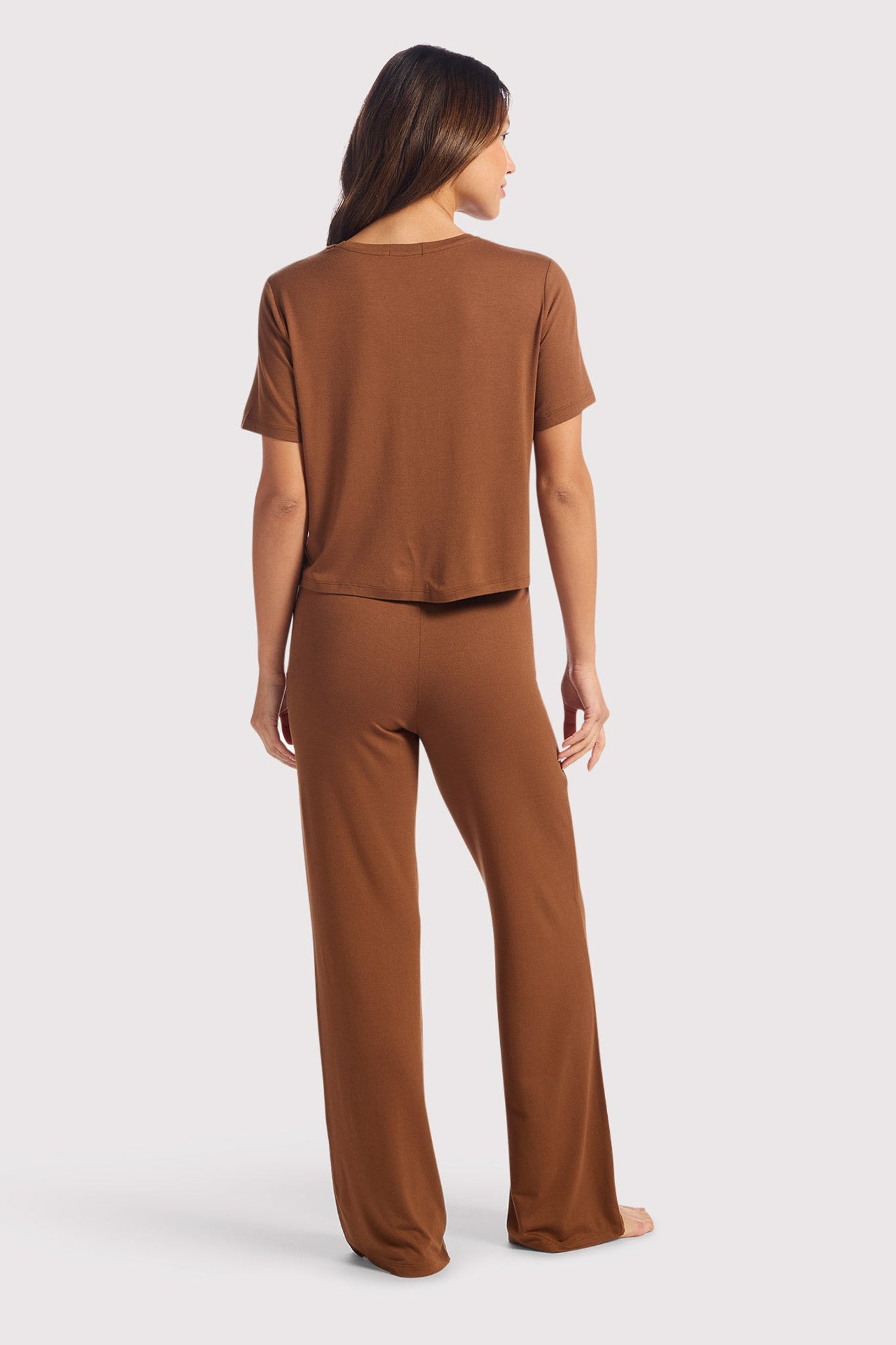 Feel nuud in our cooling pajama top and pant set. Curated with your comfort in mind, this breathable set will move with you throughout the night and on your DND (Do Not Disturb) days.
