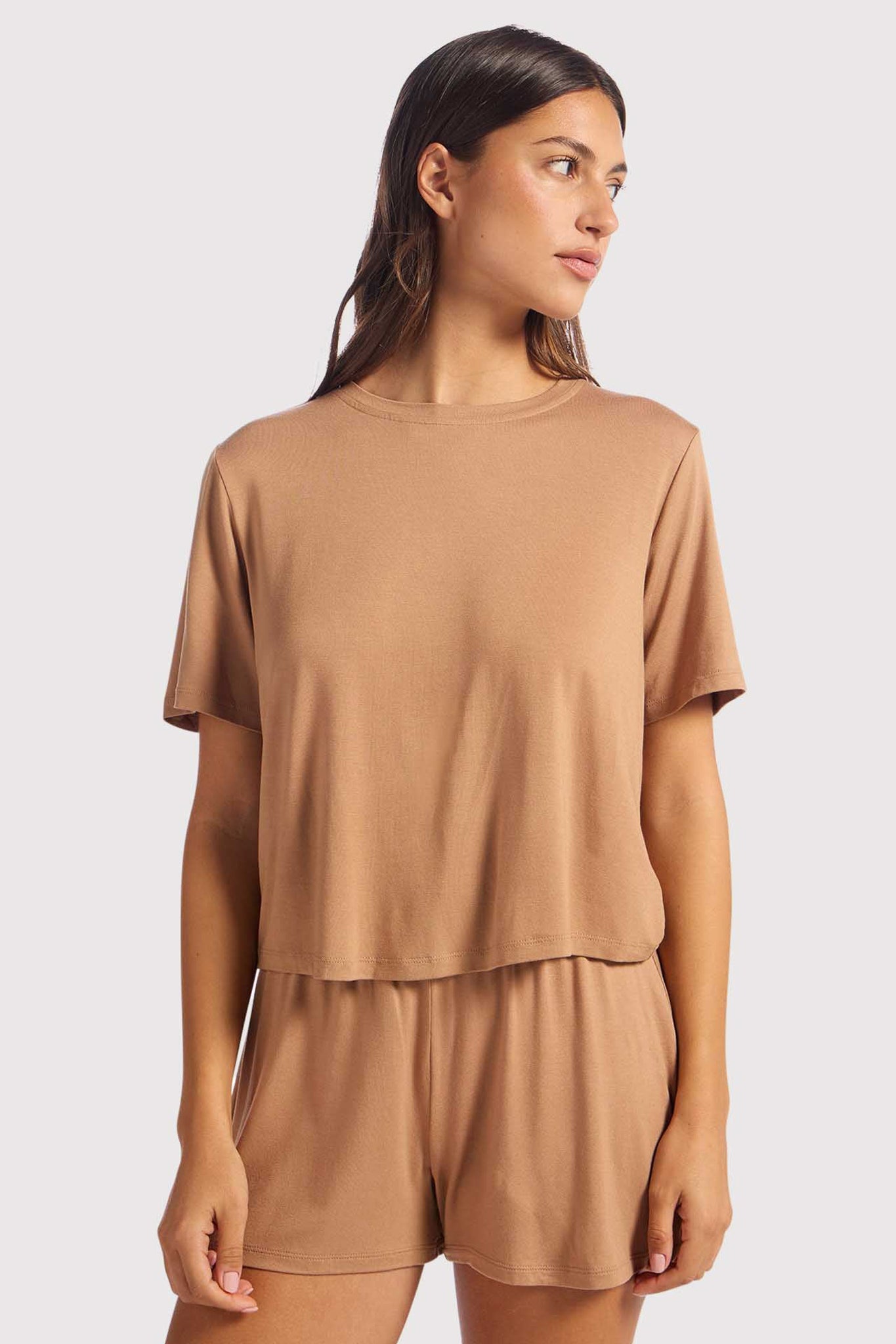 Feel nuud in our cooling pajama top and short set. Curated with your comfort in mind, this breezy set is modest enough to be worn around the house (no matter who's home) but short enough to feel modern.